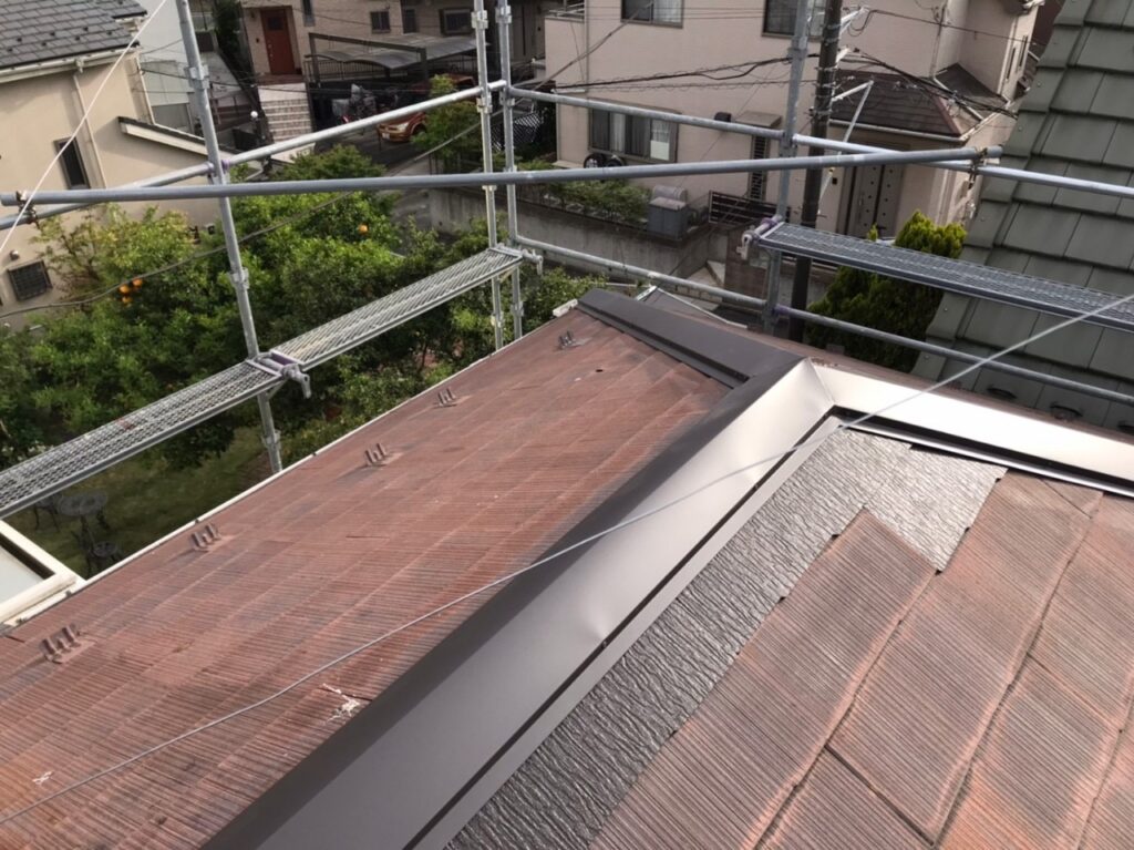 あるお客様宅では、台風の影響で棟板金が飛ばされ、雨樋も破損していました。