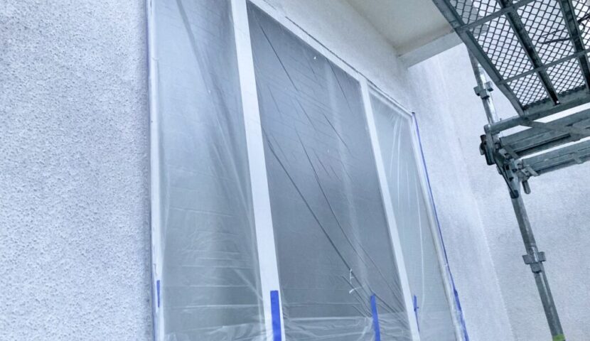 養生とは、外壁塗装の際に 塗料の飛散を防ぎ、塗らない部分を保護する作業 です。